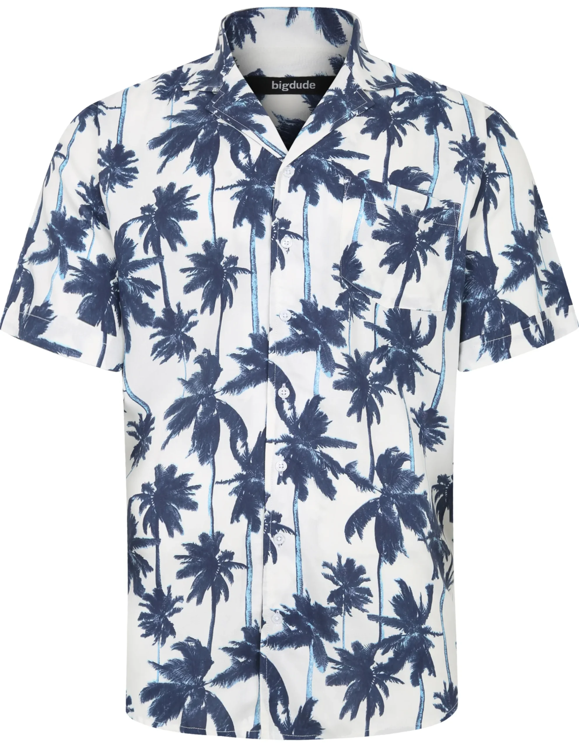 – Blue palms viscose relaxed collar shirt by Bigdude- Short sleeves- Pocket to lef…