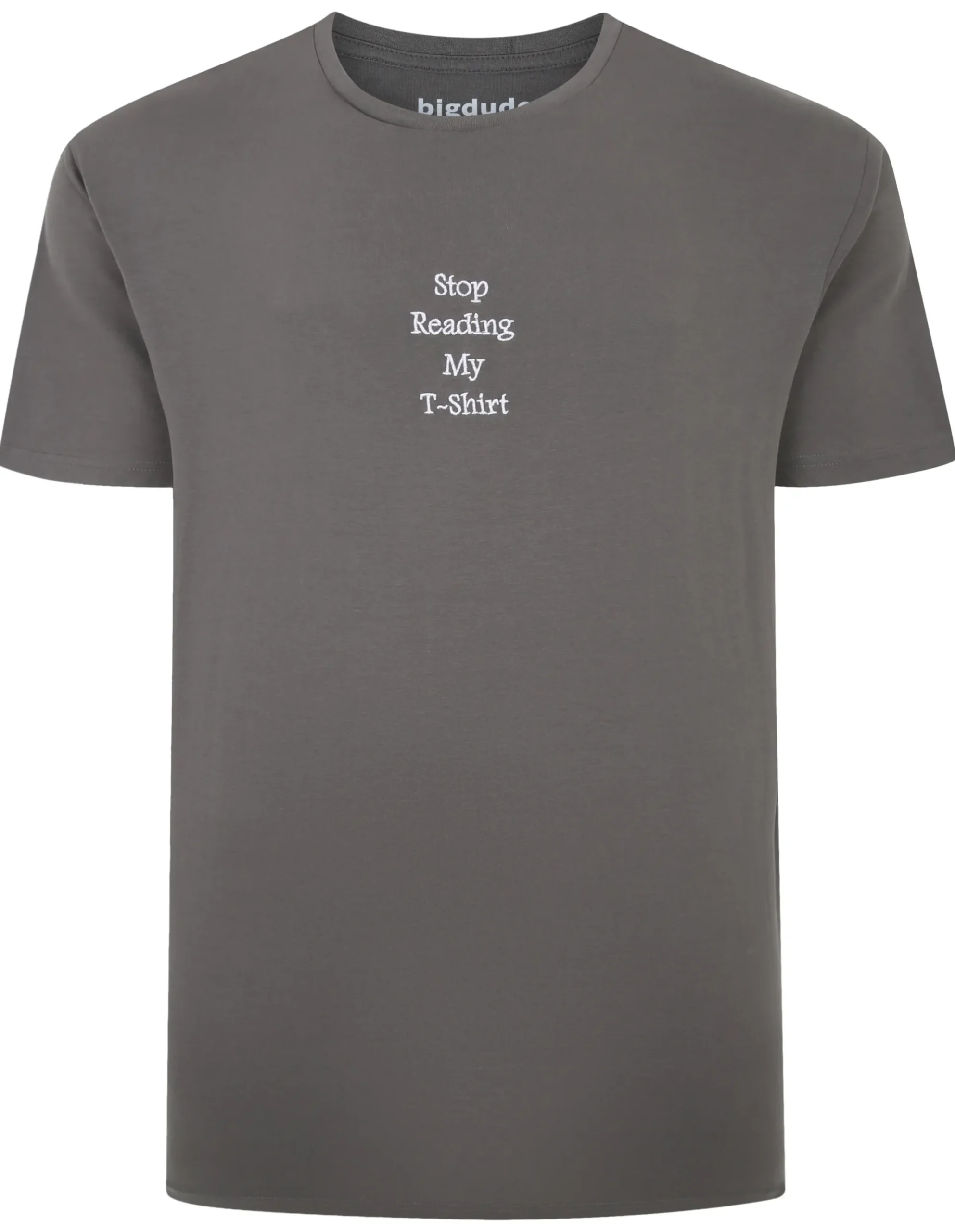 Fashion Bigdude Slogan Embroidered T-Shirt Washed Charcoal T-shirts