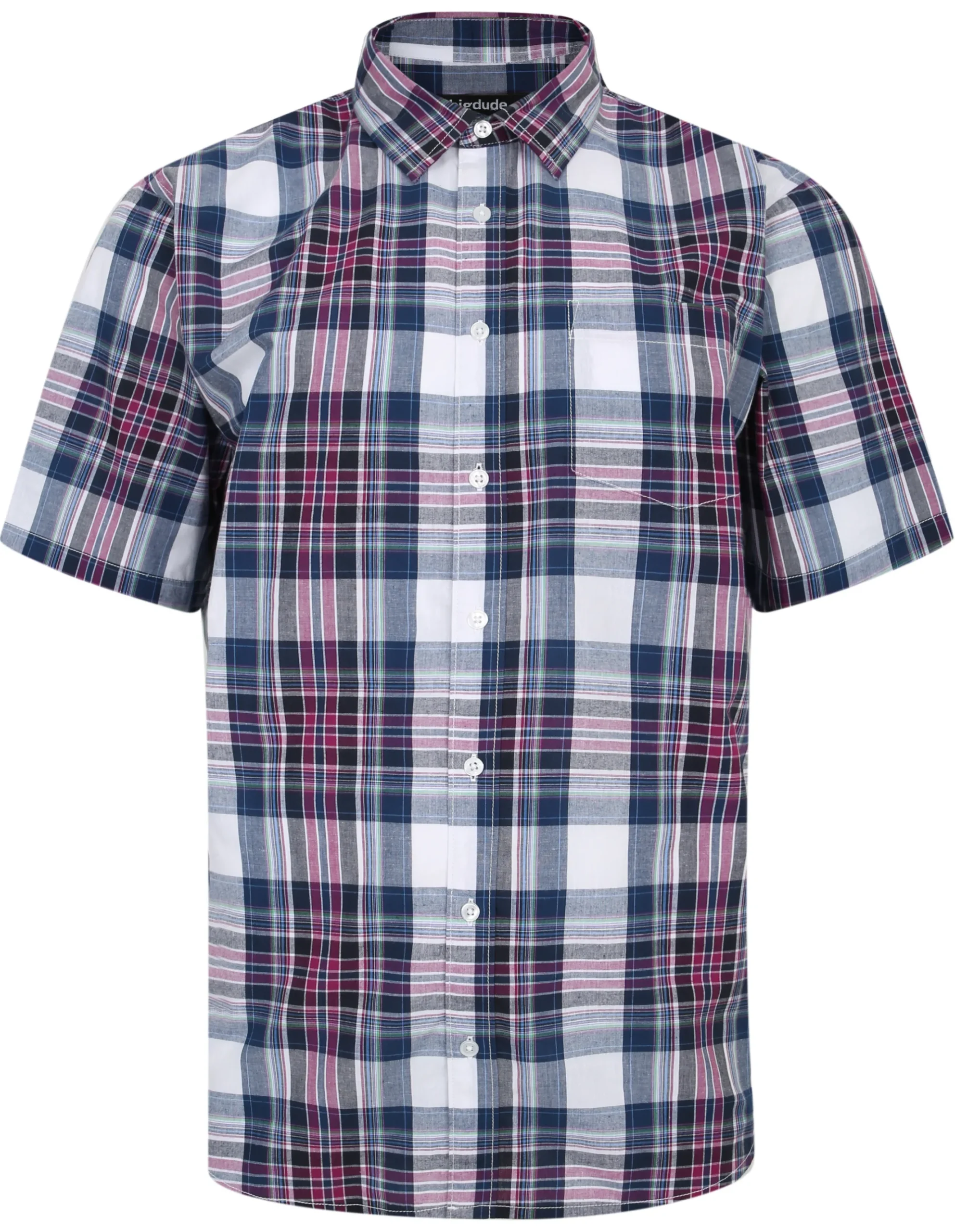 – Cutaway collar checked shirt by Bigdude- Tall fit- Short sleeves- Poplin fabric-…