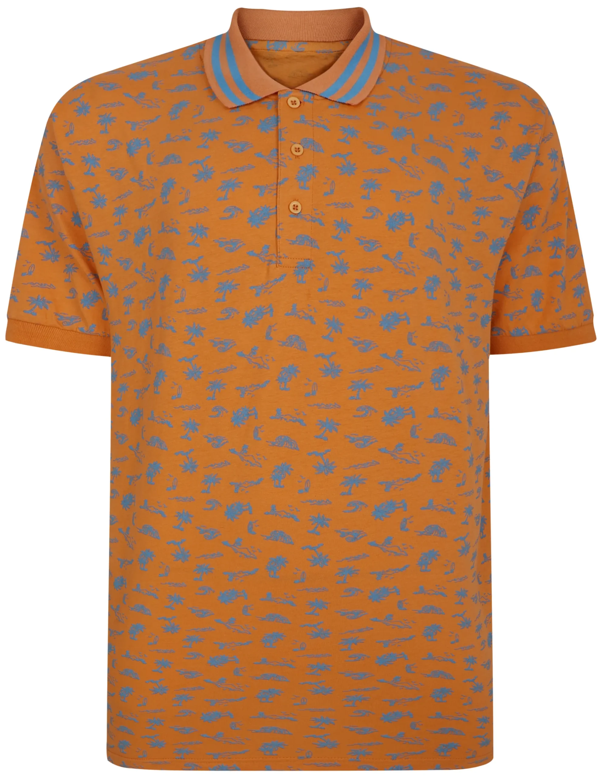 – Palm Tree Polo Apricot by Bigdude- Palm tree AOP- Short sleeve- Flat knit collar…