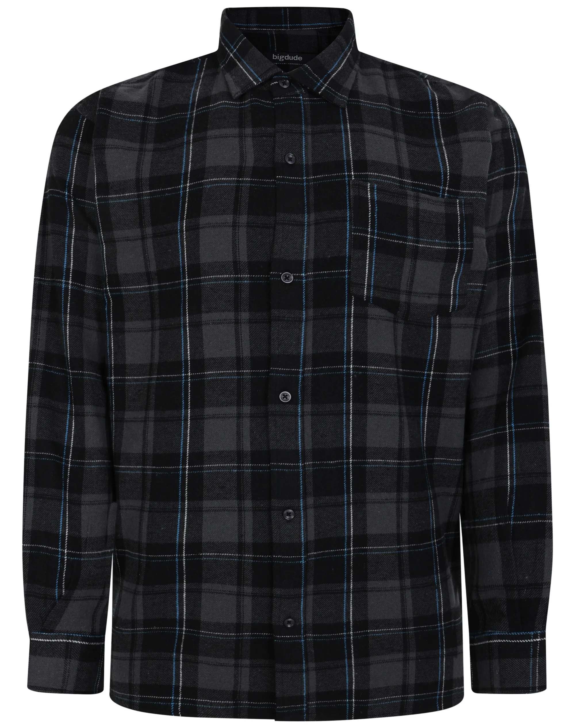 Sale Bigdude Checked Flannel Long Sleeve Shirt Charcoal/Blue Tall Casual Shirts