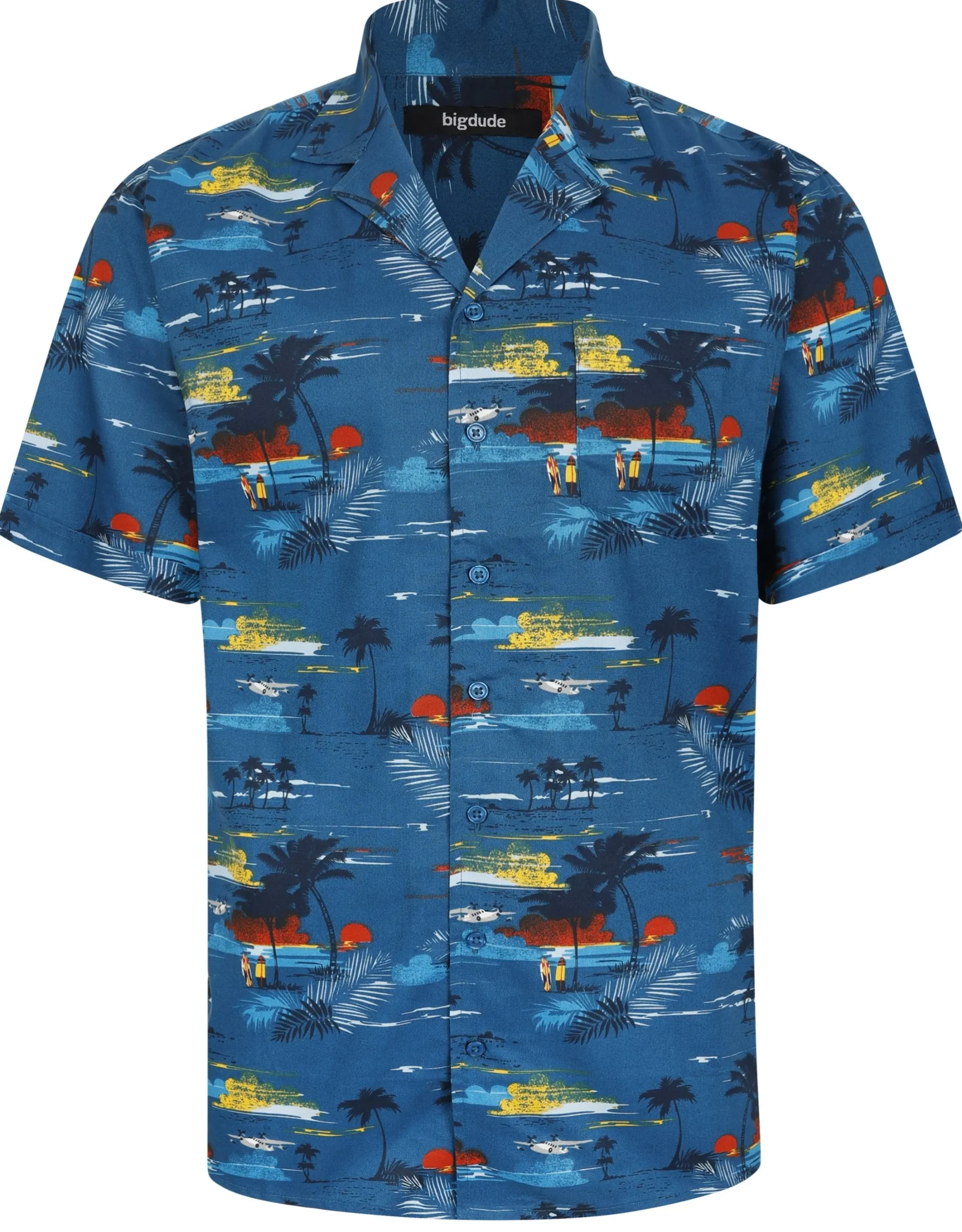 – Island viscose relaxed collar shirt by Bigdude- Tall fit- Short sleeves- Pocket …